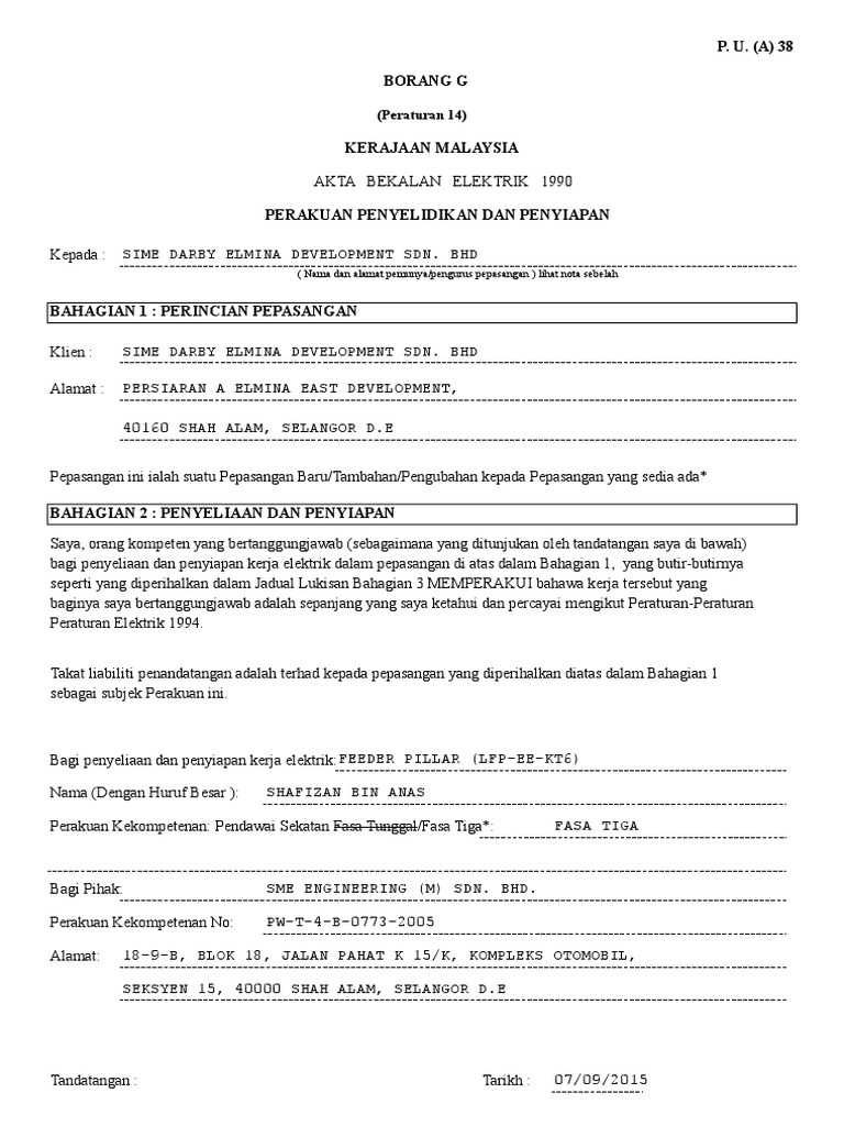 . Pemunya atau pengurusan pepasangan hendaklah mengemukakan perakuan penyeliaan dan penyiapan dan perakuan ujian borang g dan h jadual pertama kepada. Ingat borang q n g dan h syarat utama permohonan bekalan elektrik di malaysia ni. Pemunya atau pengurusan pepasangan hendakiah mengemukakan perakuan penyeliaan dan.